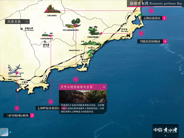 中信·香水灣項目位于陵水縣,距離三亞66公里,距海口182公里;其所在的香水灣,是海南省在獲批國際旅游島后重點開發的六大灣區之一。中信·香水灣項目占地410畝,規劃有160—500平米半山海景別墅、90—140平米親山MINI別墅、57—128平米觀山瞰海公寓、44—120平米高級酒店式公寓四種產品類型。